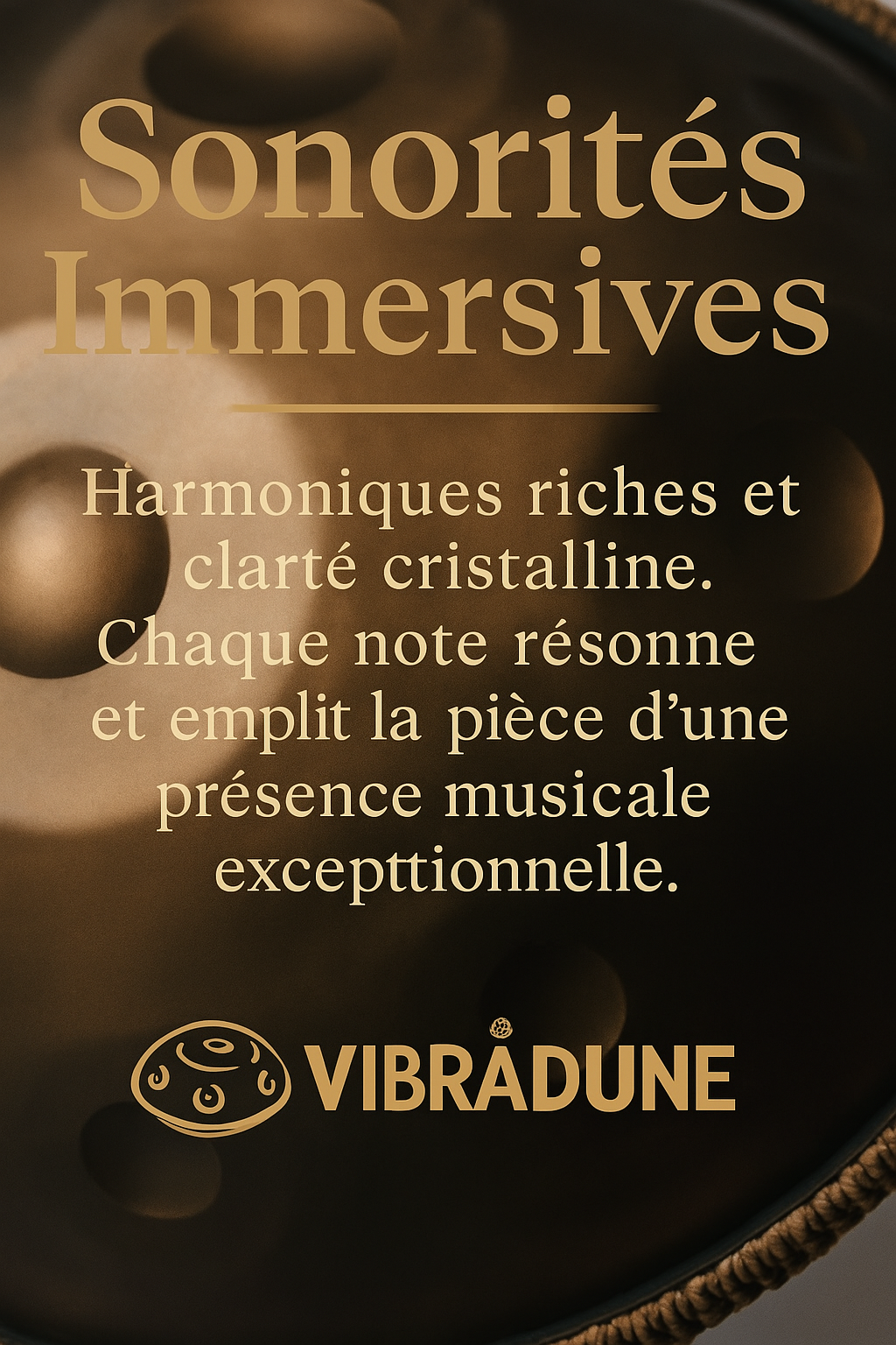 ALYON : Un handpan vibrant, L’ALYON se distingue par sa chaleur et sa richesse tonale, parfait pour des compositions uniques.
